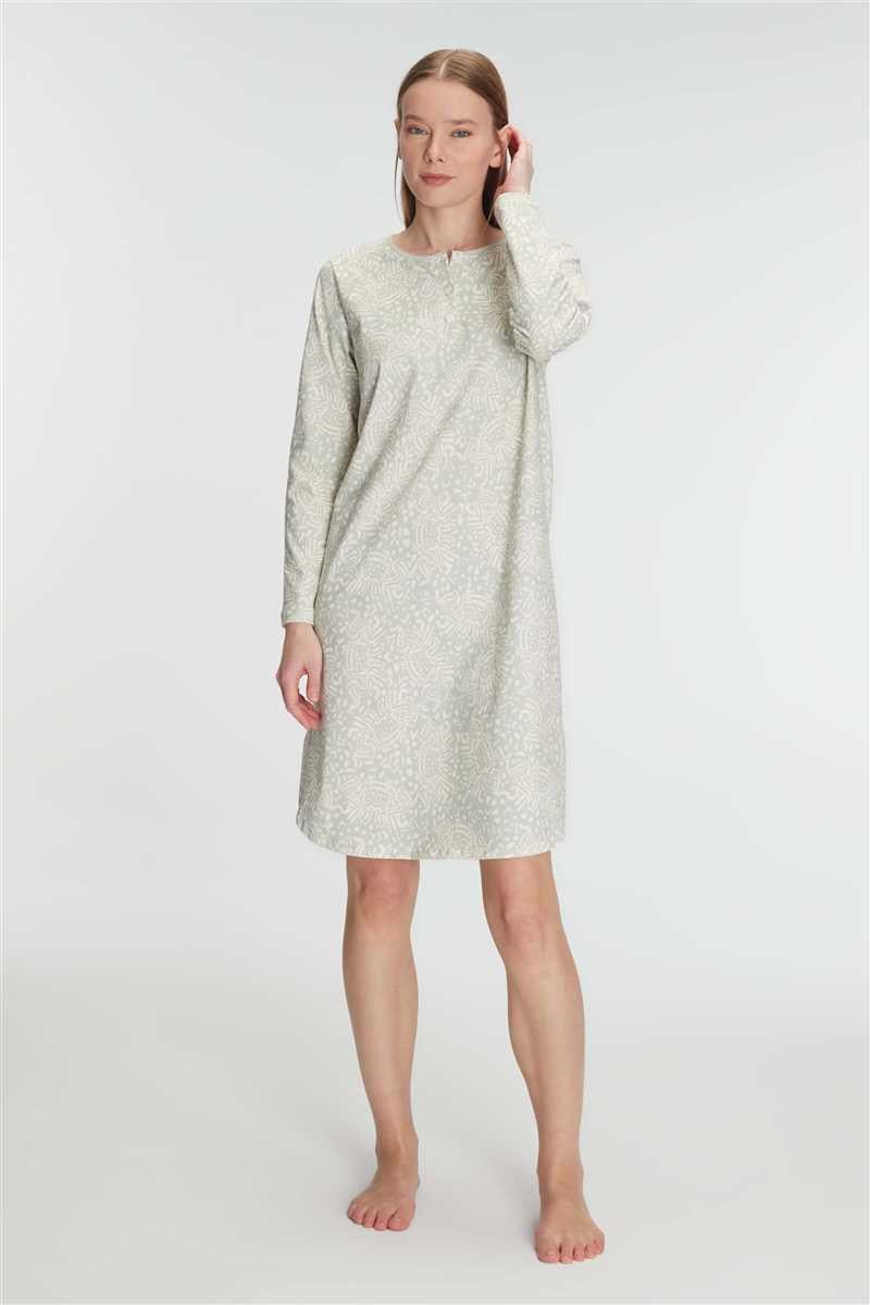Anıl 11296 Kadın Pamuklu Uzun Kollu Gecelik (MAN11296-04)