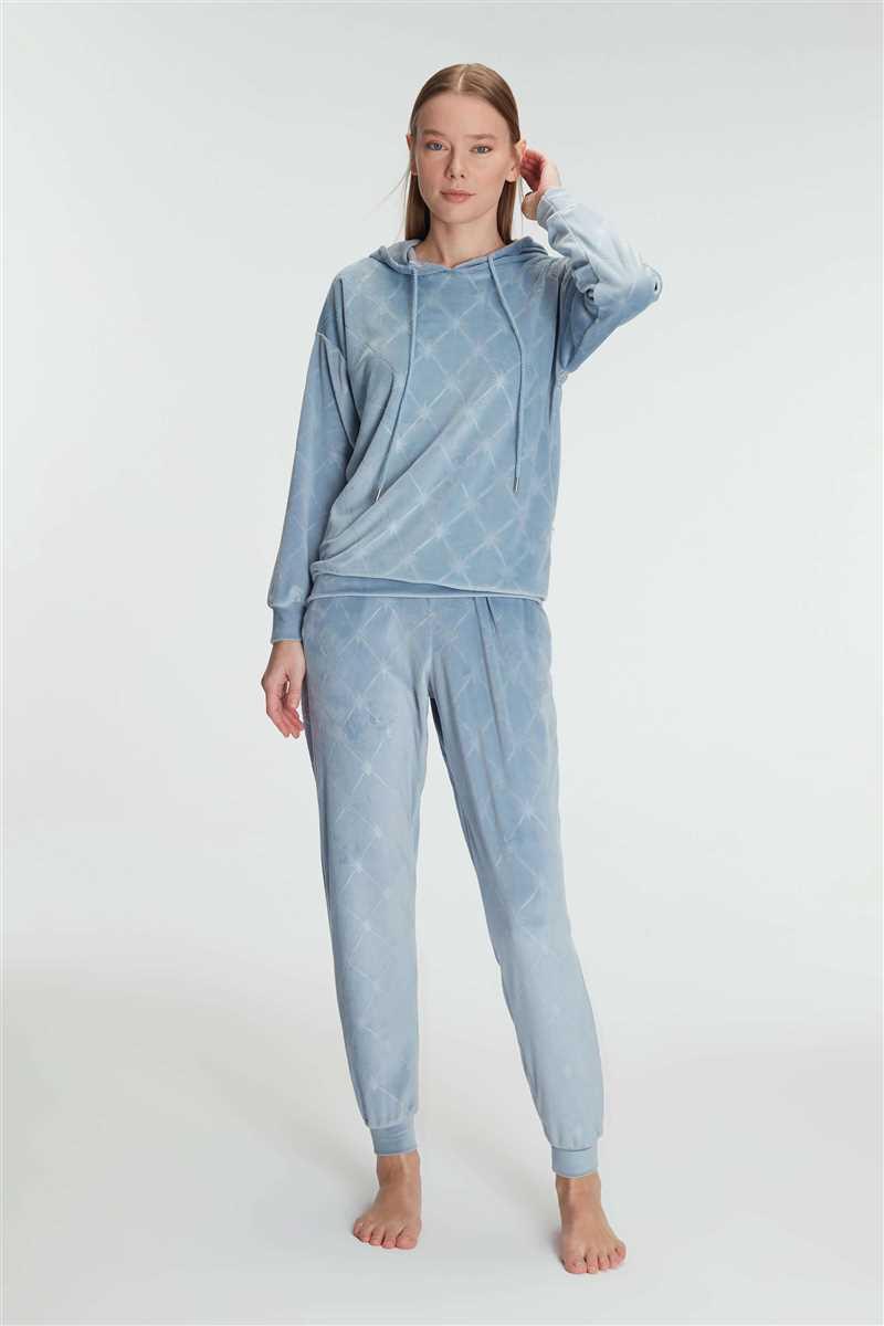 Anıl 11301 Kadın Kapüşonlu Uzun Kol Sweatshirt Pijama Takımı (MAN11301-04)