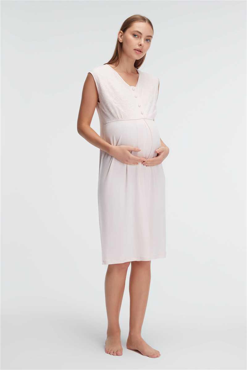 Anıl 11313 Kalın Askılı V Yaka Kadın Viskon DÜZ Yazlık Örme Normal Bel hamile gecelik Sabahlık