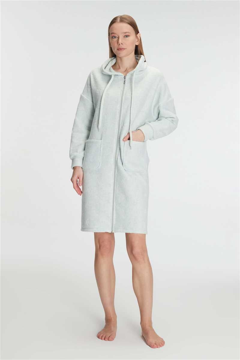 Anıl 11328 Kadın Polar Kapüşonlu Cepli Fermuarlu Kışlık Sabahlık (MAN11328-02)