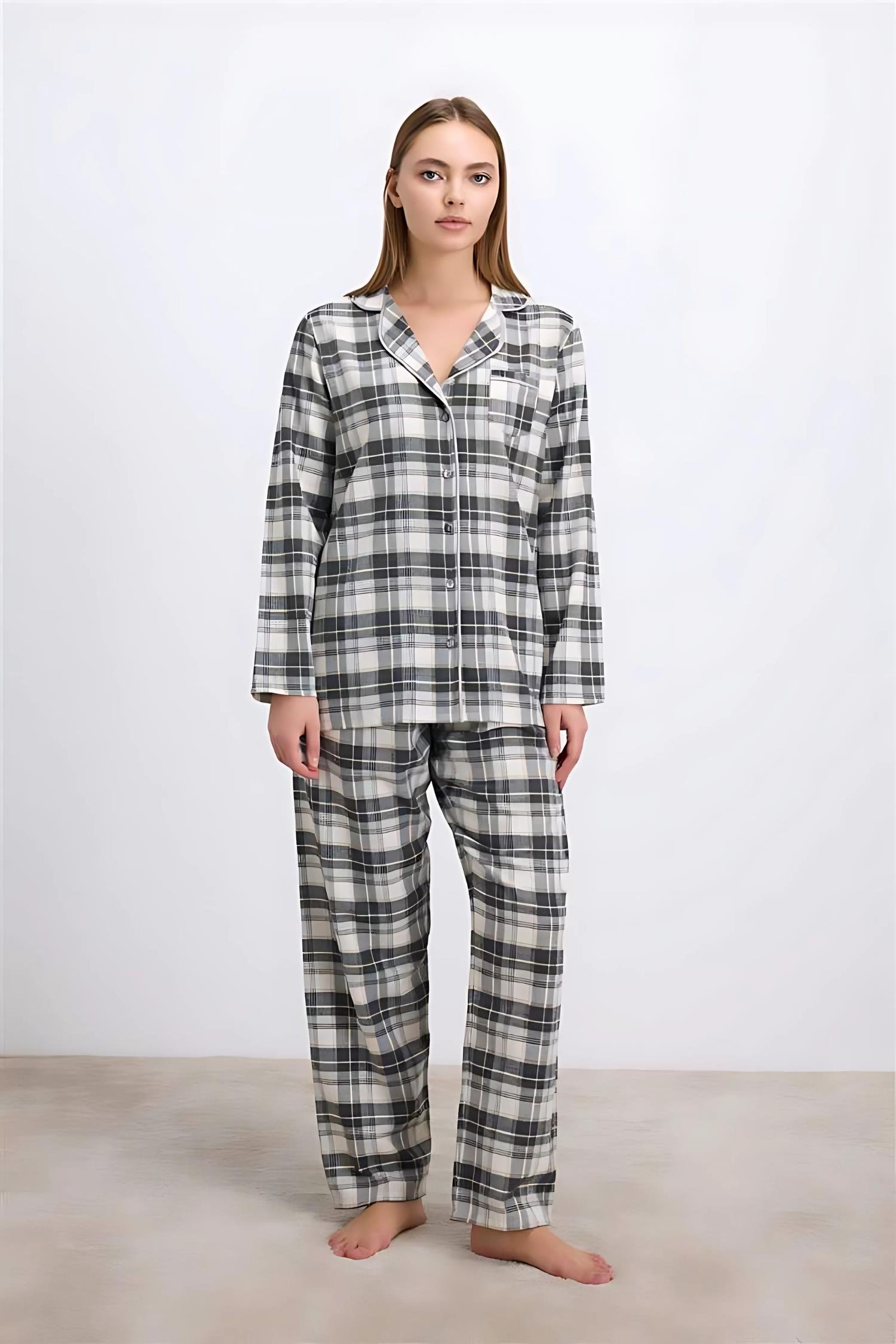 Antrasit Pamuklu Uzun Kol Gömlek ve Pantolon Pijama Takım (MAN11594-03)