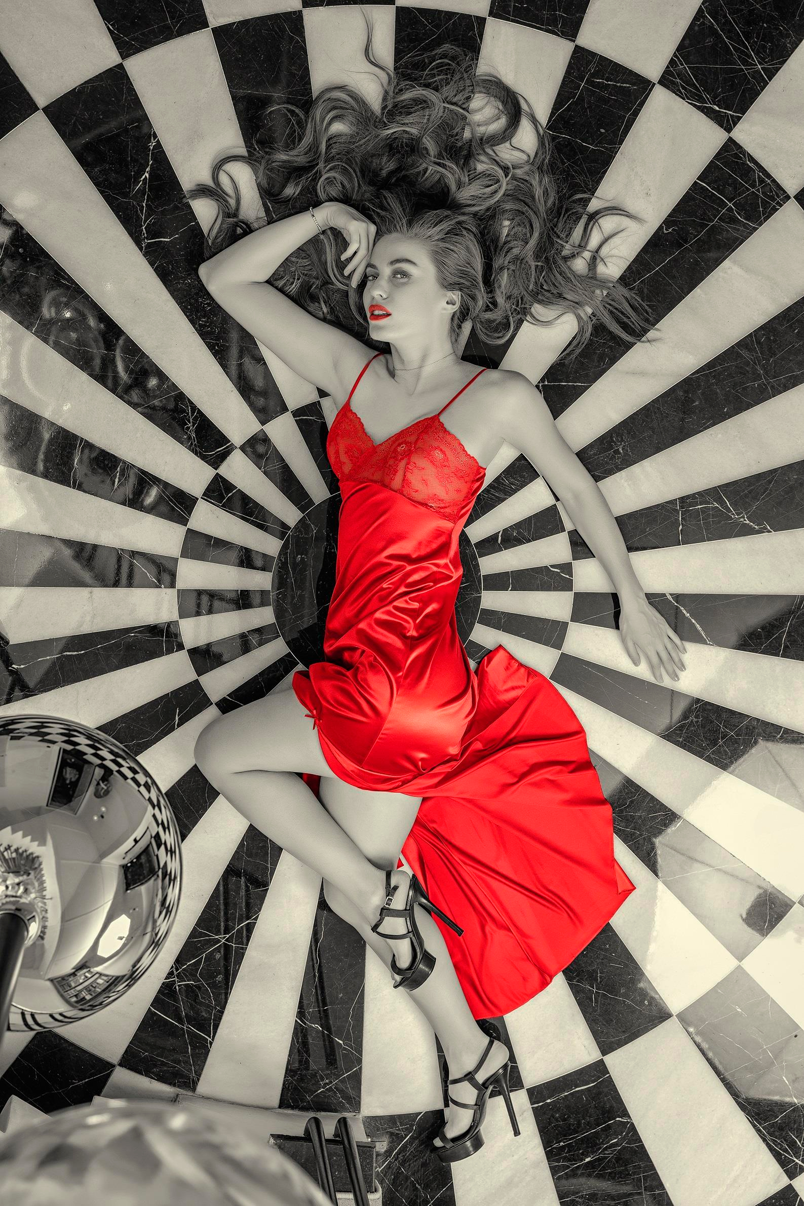 Dantelli Uzun Yırtmaçlı Saten Gecelik Elbise String Takım Kırmızı (Mgp31512) (MGP31512-1799)