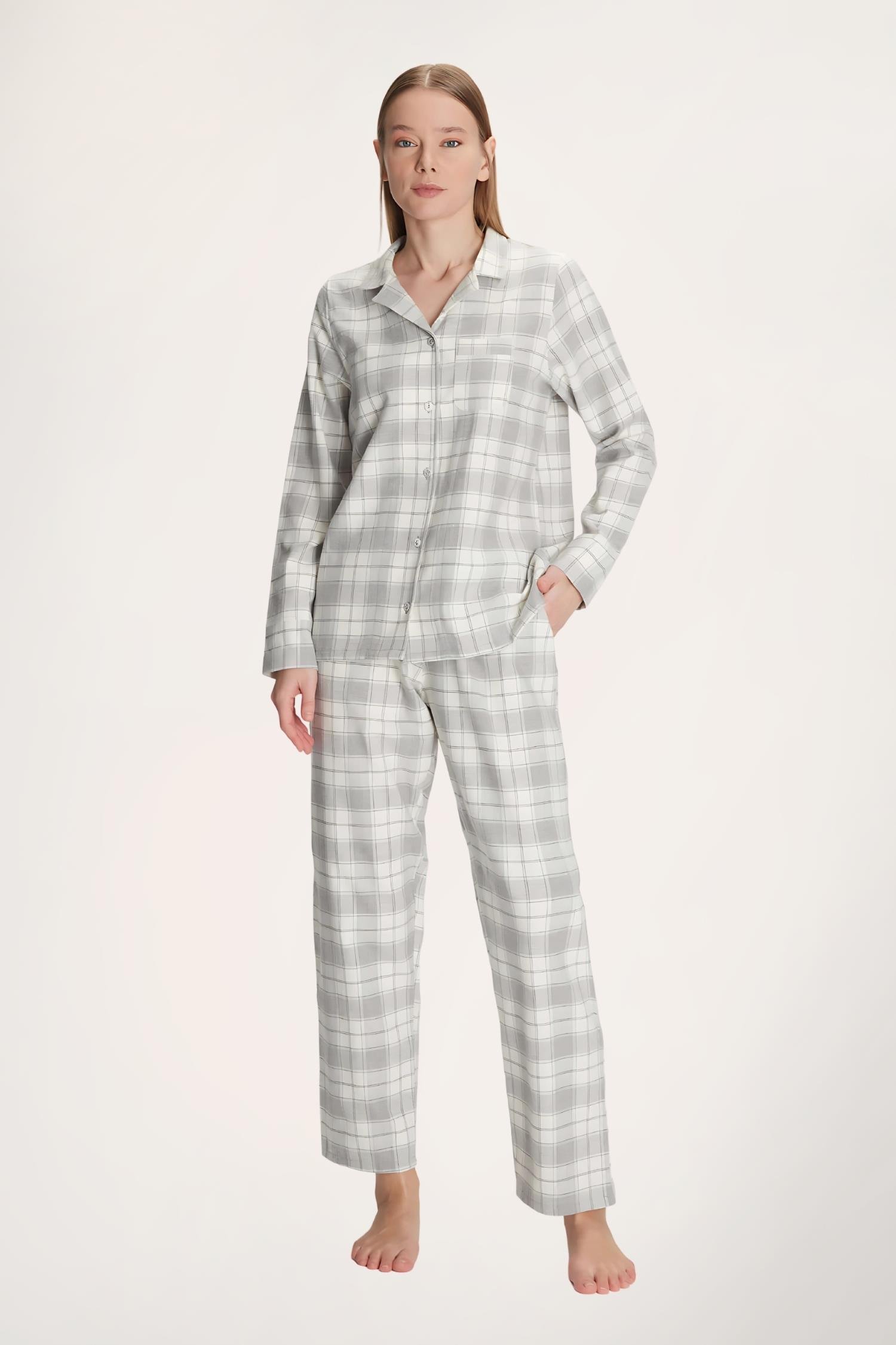 Anıl 11252 Kadın Kare Desenli Pamuklu Gömlek Pijama Takımı