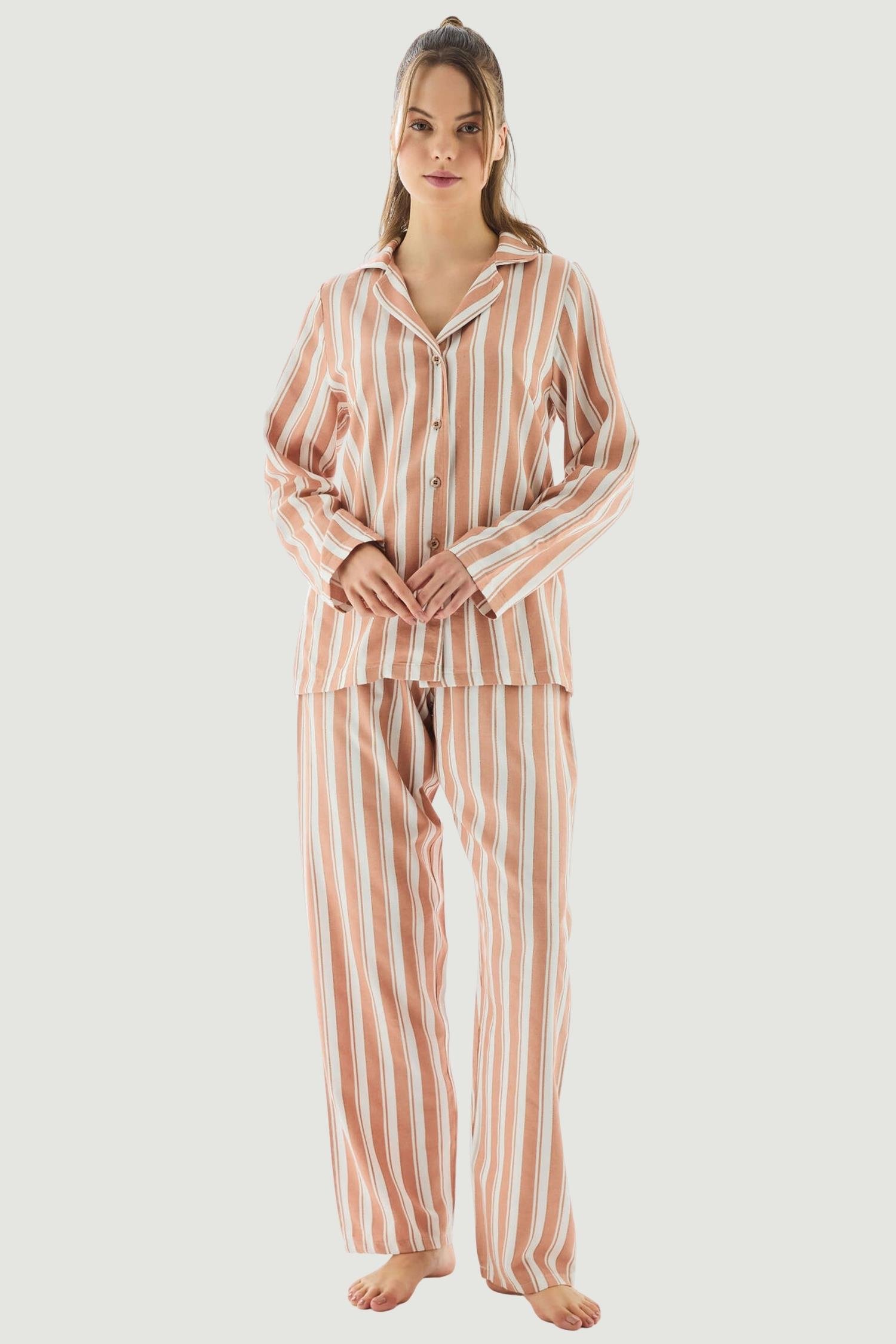 Anıl 11498 Kadın Viscose Çizgili Gömlek Pantolon Pijama Takımı