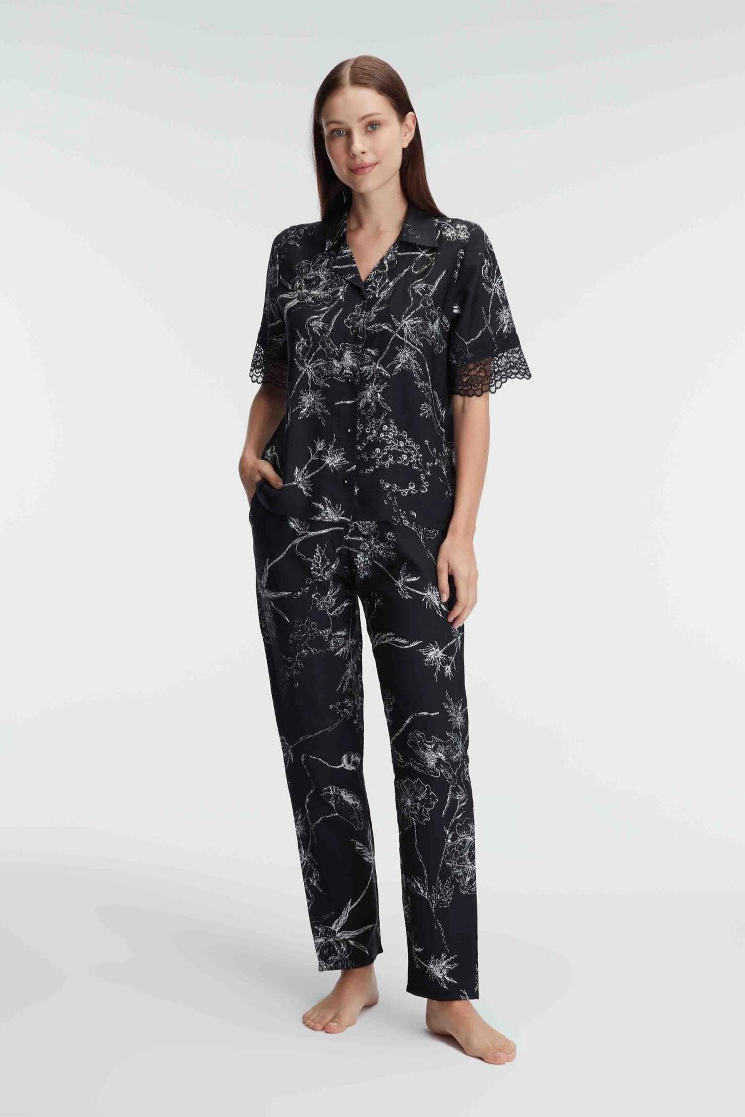 Siyah Viskon Yarım Kollu Dantel Detaylı Pijama Takımı (MAN9895-02)