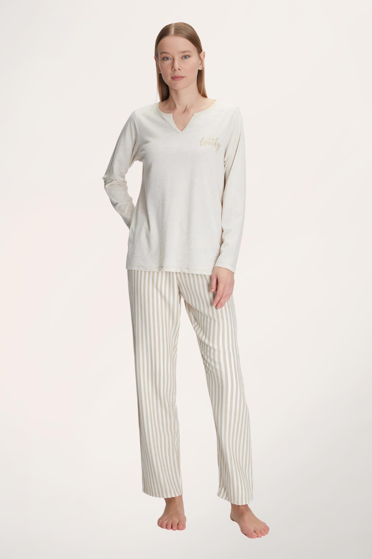 Anıl 11213 Kadın Uzun Kollu Çizgili V Yaka Kışlık Pijama Takımı